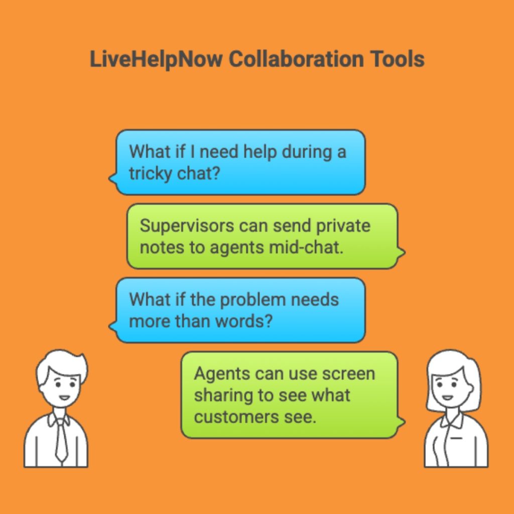 Even with AI doing the heavy lifting, customer service still needs human judgment. That’s where LiveHelpNow’s real-time collaboration tools come in.