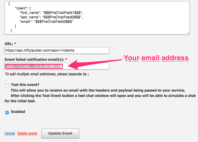 9. Add an email address to the “Event Failed Notification(s)” field