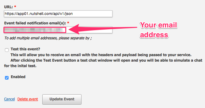 6. Add an email address to the “Event Failed Notification(s)” field