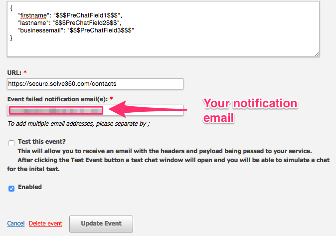 The $$$LastName$$$ label in the Payload syntax above assumes you are collecting the chat user’s Last Name in the Pre-Chat Requested Information in LiveHelpNow.
